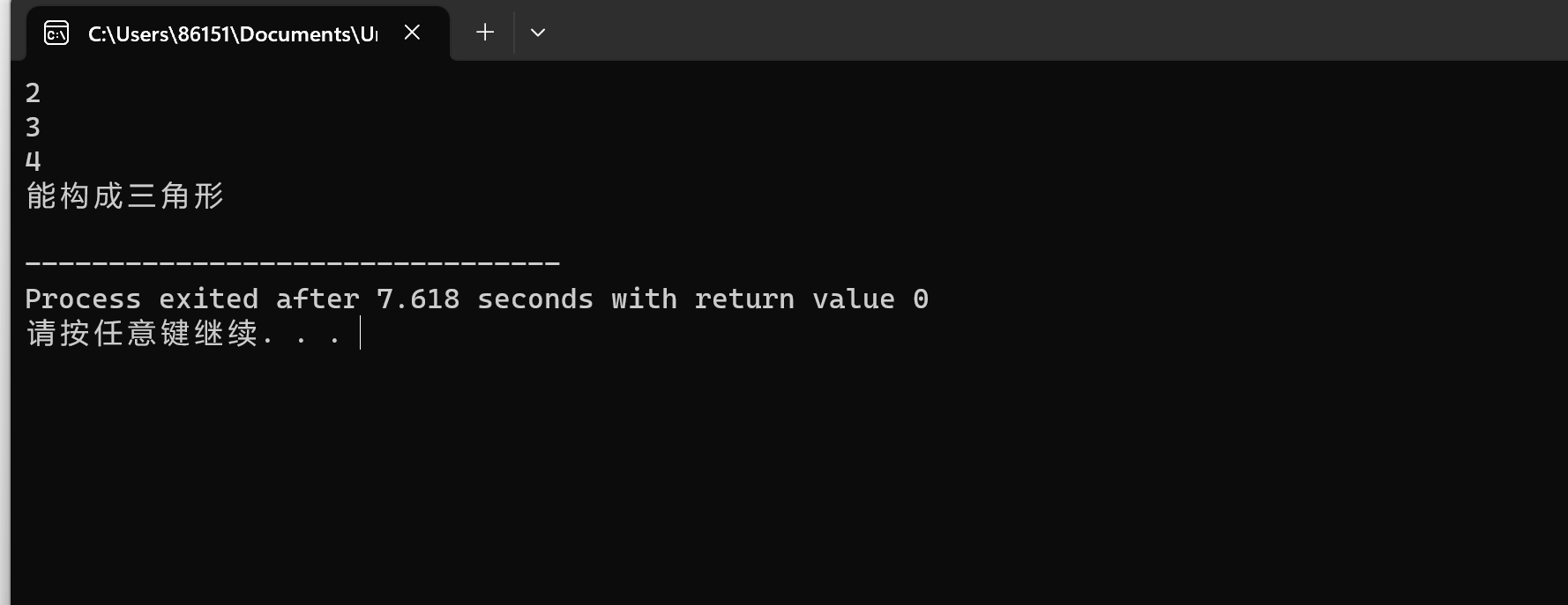 printf("能构成三角形\n");