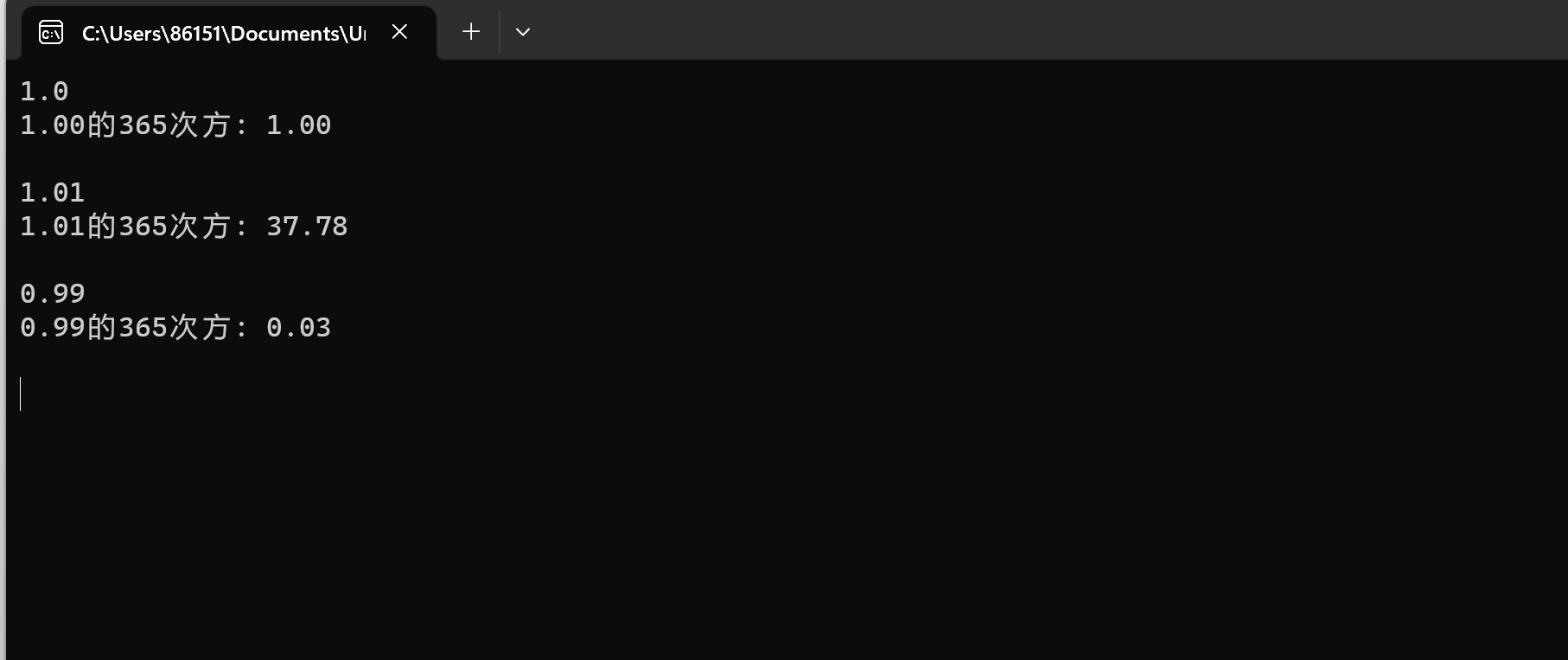 printf("%.2f的365次方: %.2f\n", x, ans);