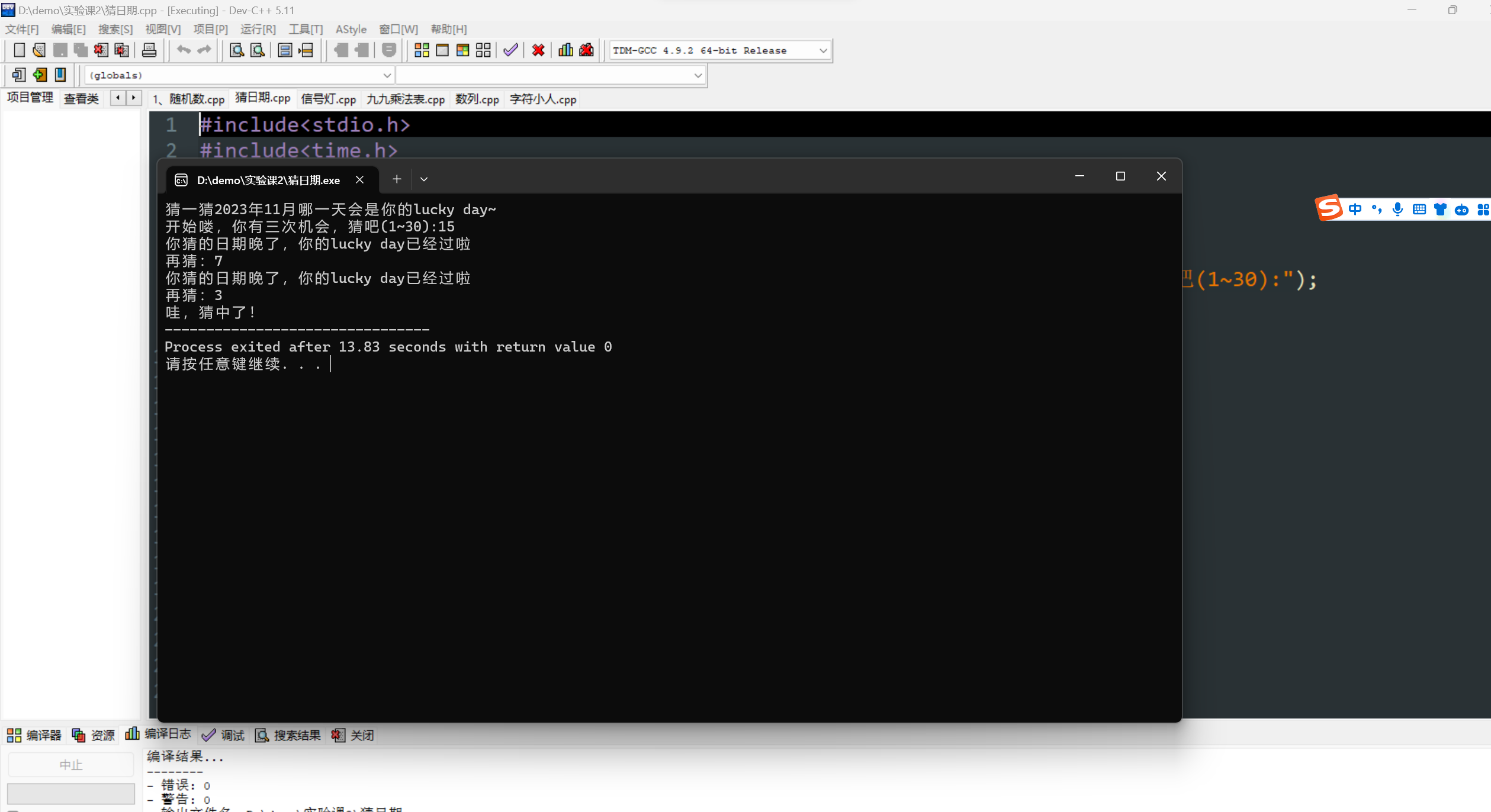 printf("你猜的日期晚了,你的lucky day已经过啦\n再猜:") ;