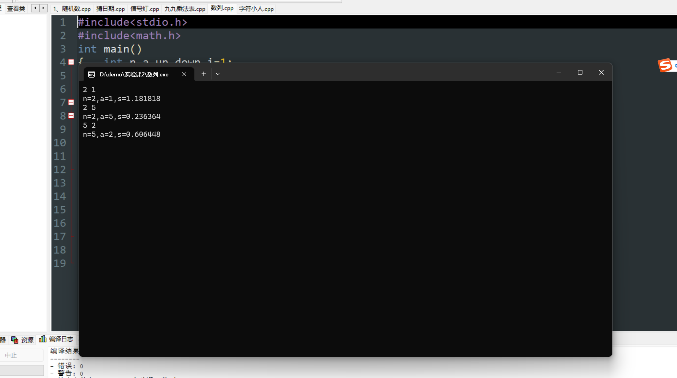 printf("n=%d,a=%d,s=%lf\