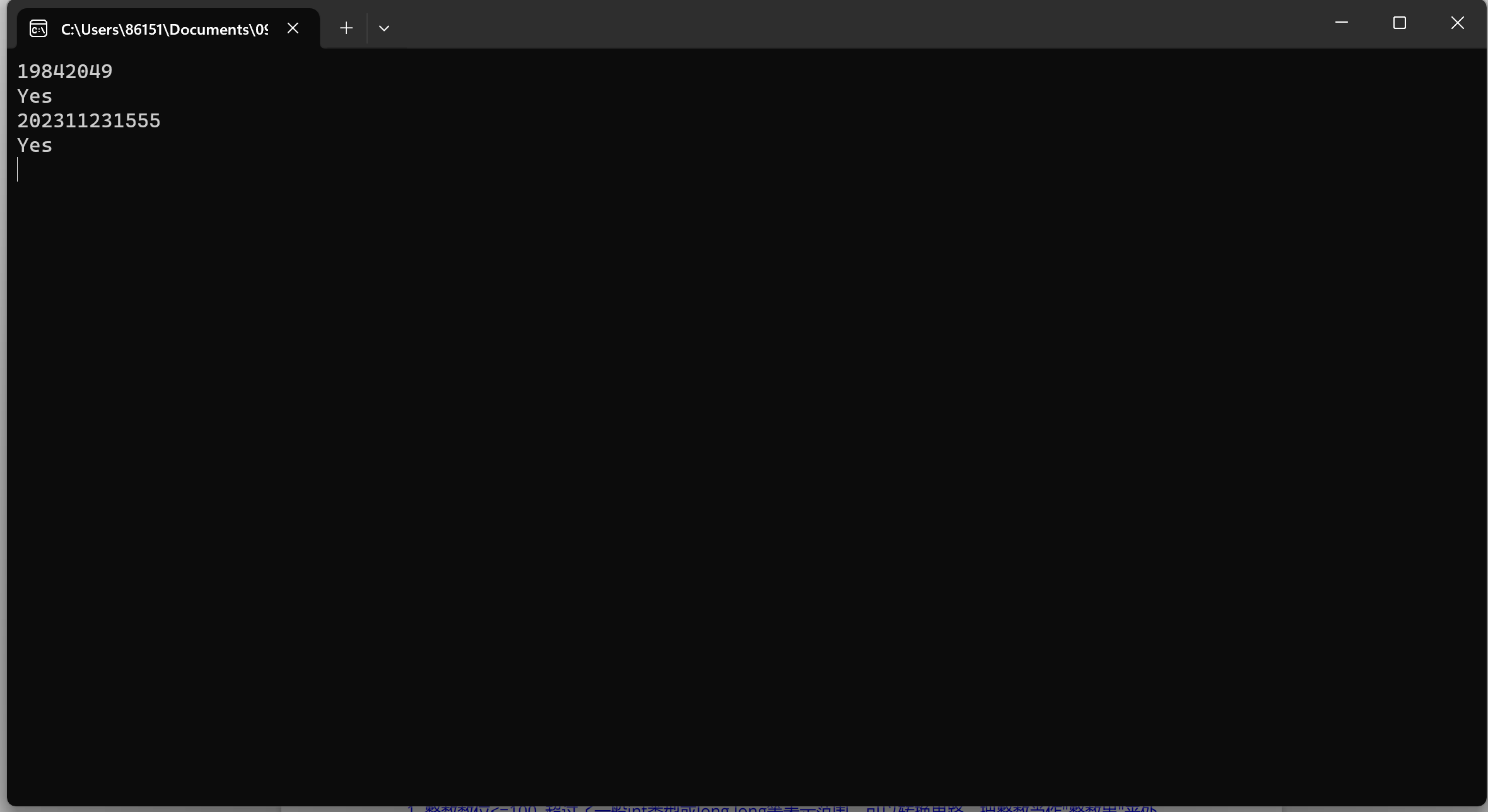#include<stdio.h> #include <string.h> int main() { long long int n; char a[100]; int i,j,h,k; while(gets(a)) { long long len=strlen(a); for(j=0;j<=len-1;j++) { for(h=j+1;h<=len-1;h++) { if(a[j]==a[h]) { printf("Yes\n"); k=1; break; } } if(k==1) break; } if(j==len-1) printf("No\n"); } return 0; }