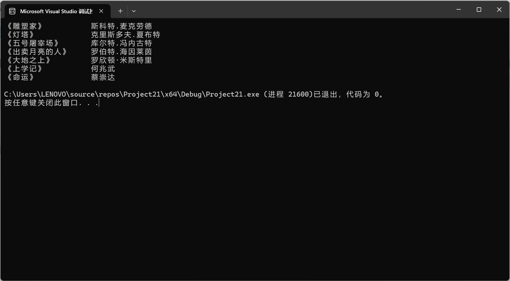 // 从二进制文件data2.dat读取图书信息,并打印输出到屏幕