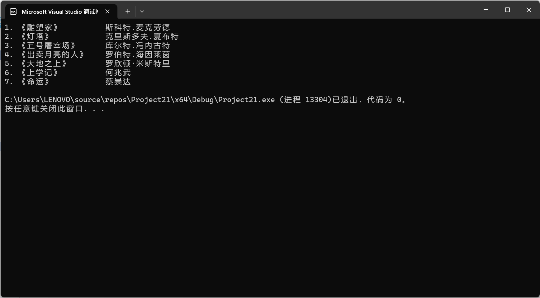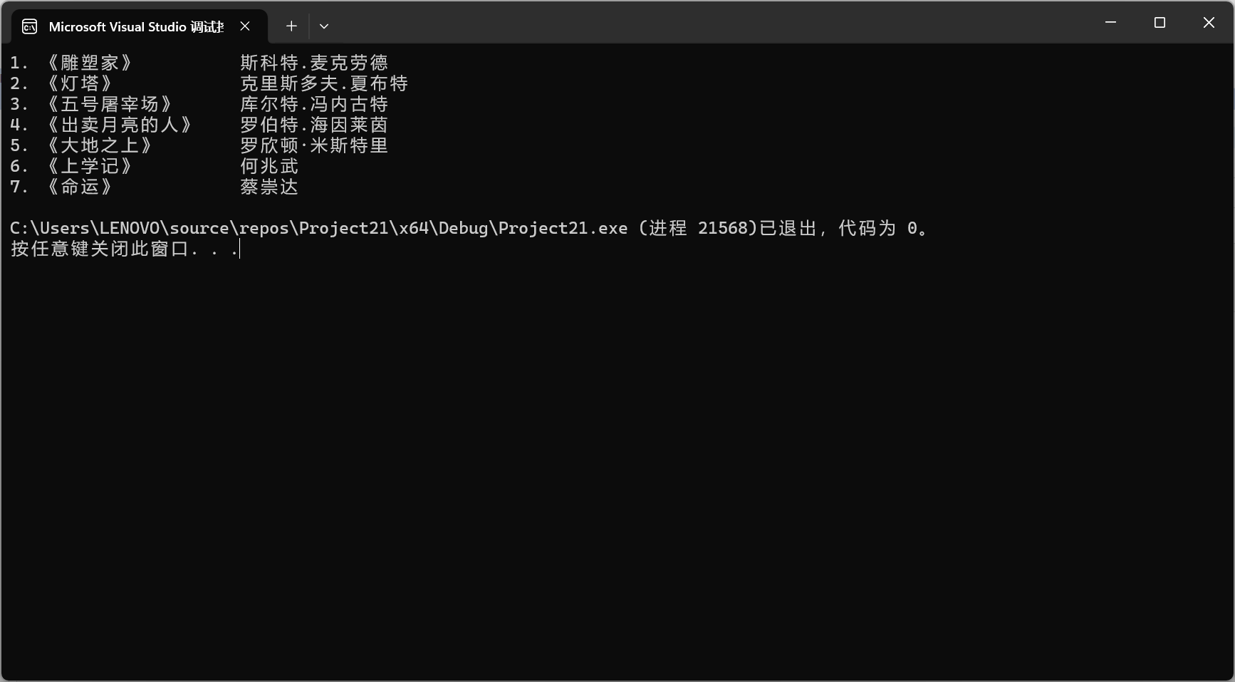 // 在屏幕上输出结构体数组x中存储的图书信息