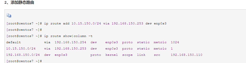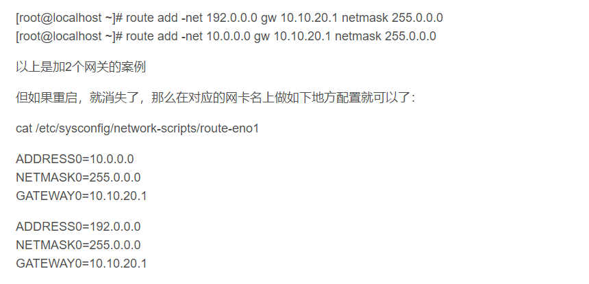 route add 网络目的地址 mask 子网掩码网关 [metric] [测量值]
