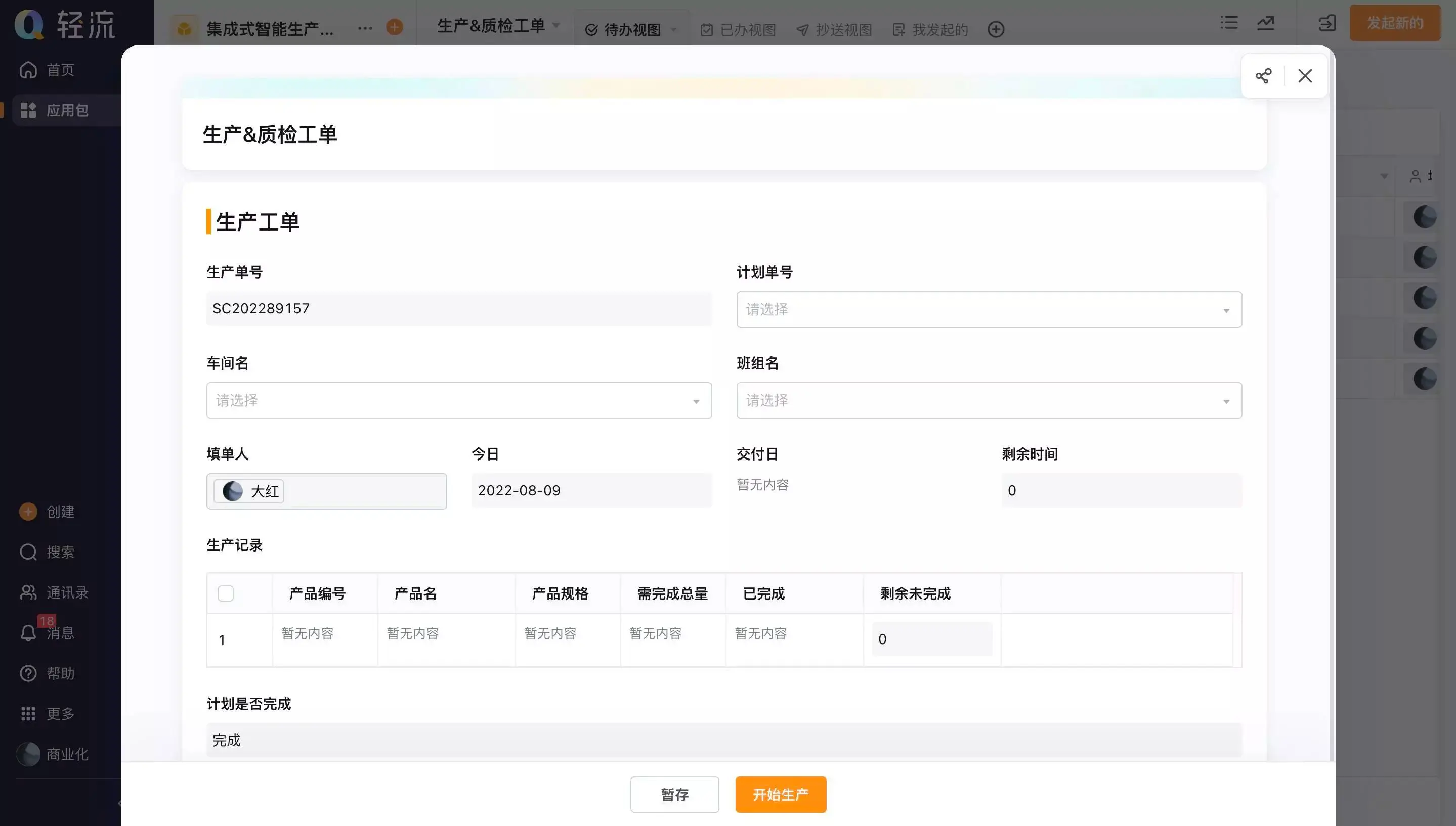 轻流作为无代码开发平台的典型代表,为生产企业打造了高度灵活且能定制的生产管理解决方案。借助可视化界面,企业即便没有编程基础,也能依据自身独特的生产流程,快速搭建起涵盖生产计划、物料管理、设备维护、质量检测等核心模块的管理系统。