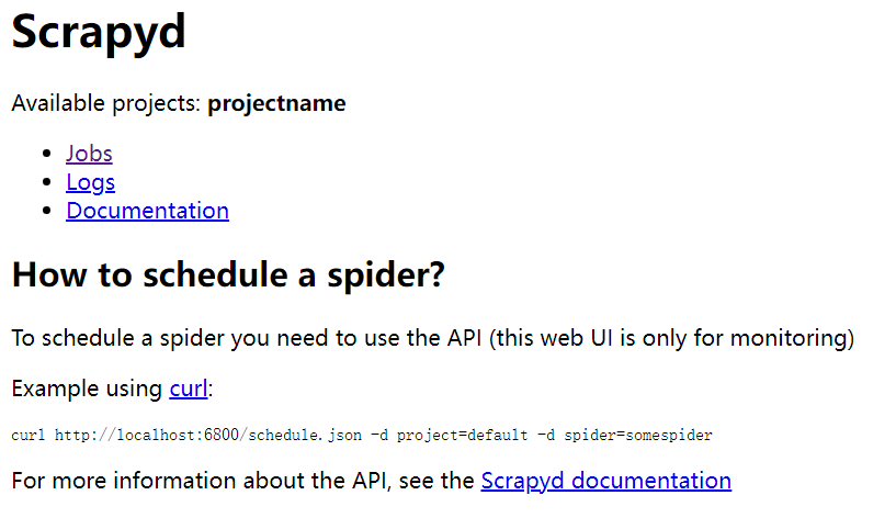 - 终端输入scrapyd,打开127.0.0.1:6800