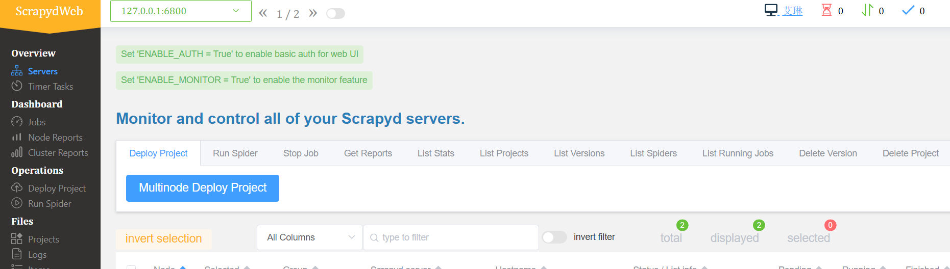 pip install scrapydweb scrapydweb - 成功后终端会显示链接网页,打开就可以了