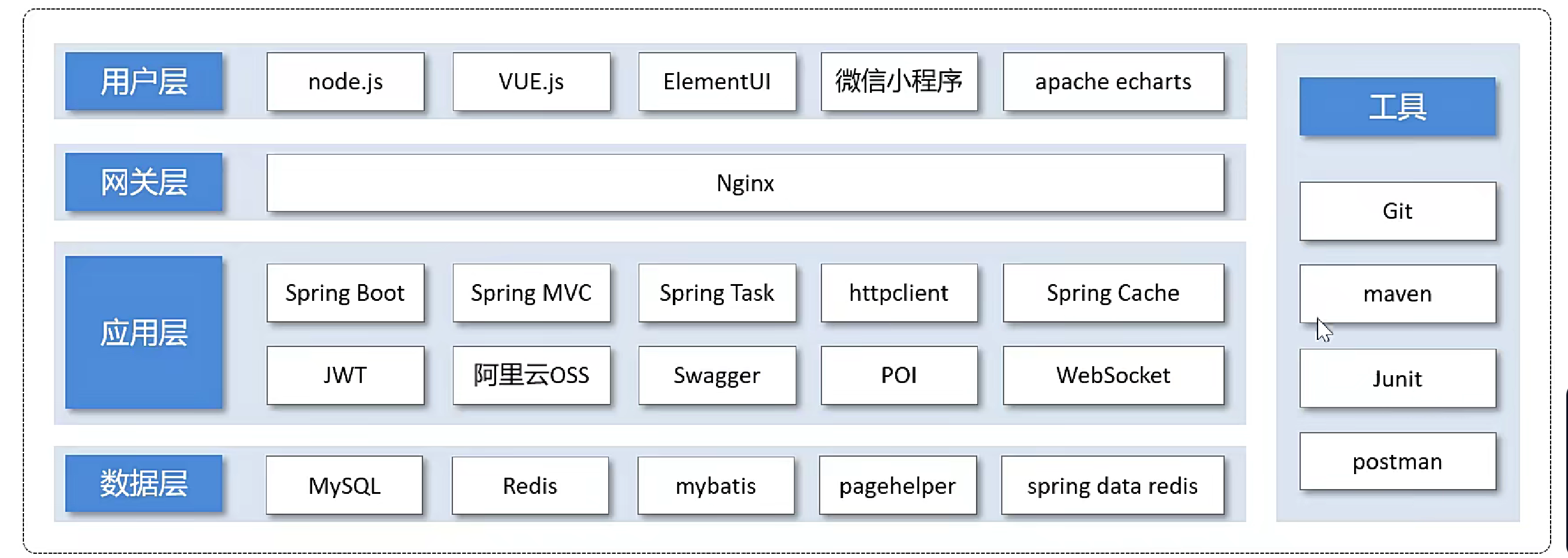 - 后台管理前端:H5、Vue.js、ElementUI、apache echarts(展示图表)