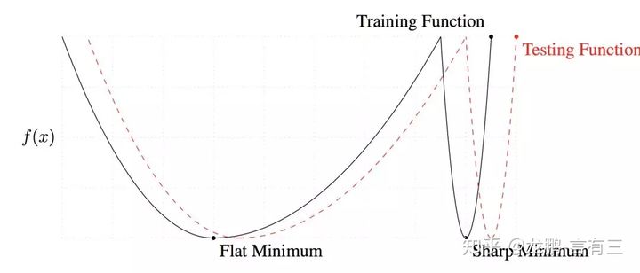 研究[6]表明大的batchsize收敛到sharp minimum,而小的batchsize收敛到flat minimum,后者具有更好的泛化能力。两者的区别就在于变化的趋势,一个快一个慢,如下图,造成这个现象的主要原因是小的batchsize带来的噪声有助于逃离sharp minimum。