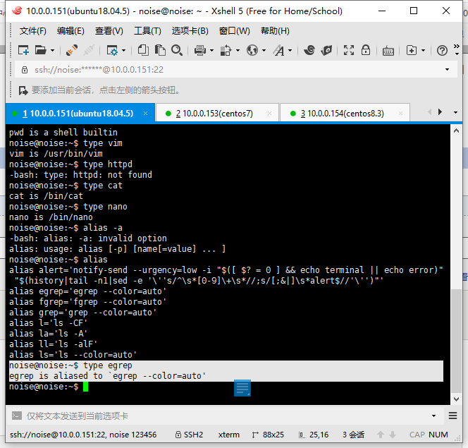 egrep is aliased to `egrep --color=auto' #这是alias别名,可行定义,可用alias查看所有别名