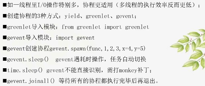 1 """ 2 协程:实现多任务的另一种方式; 3 单线程的并发,又称微线程; 4 一种用户态的轻量级线程 5 6 特性: 7 对于协程来说,程序员就是上帝,你想让她执行到哪里,他就执行到哪里--实现任务的任意切换 8 原理:能够保留上一次调用的状态(生成器也有这个功能) 9 意义:线程间切换需耗时(保存状态,下次继续),协程只使用一个线程,切换耗费更少的资源。 10 11 应用场景:如果一个线程里面IO操作特别多,协程(与线程相比)的执行效率更高 12 13 """ 14 15 16 def learn(): 17 18 yield '语法' 19 yield '数学' 20 yield '英语' 21 22 23 def work(): 24 25 yield 'SDR02150' 26 yield 'SDR02151' 27 yield 'SDR02152' 28 yield 'SDR02153' 29 30 31 if __name__ == '__main__': 32 33 t1 = learn() 34 t2 = work() 35 # 36 # print(next(t1)) 37 # print(next(t2)) 38 # print(next(t1)) 39 # print(next(t2)) 40 # print(next(t1)) 41 # print(next(t2)) 42 # print(next(t2)) 43 # 44 for i in t1: #生成器本身是迭代器 拥有next(),iter() 45 print(i) 46 47 48 49 50 """ 51 greenlet:是一个轻量级的协程 52 53 1> 安装模块 pip install greenlet 54 2> 对象.switch()实现任务的切换 55 56 """ 57 58 from greenlet import greenlet 59 60 def eat(): 61 print("eating") 62 63 64 def sleepp(): #sleep 可能和其他函数名重复 65 print("sleeping") 66 67 68 g1 = greenlet(eat) 69 g2 = greenlet(sleepp) 70 71 g1.switch() #切换到g1运行 72 g2.switch() #切换到g2运行 73 74 75 76 """ 77 78 特点:可实现任务的自动切换(遇到PF10),属于主动式切换; 79 主要模式:gevenlet 80 安装 pip install gevent 81 82 83 1. gevent.spawn(func,1,2,3,x=4,x=5) # 创建一个协程对象 84 2. join() 阻塞 85 3. joinall() 方法的参数是一个协程对象列表,他会等待所有的协程都执行完毕后再退出 86 87 """ 88 89 import gevent 90 import time 91 # from gevent import monkey 92 # monkey.patch_all() 93 94 # 打补丁,为了能识别time.sleep()为一个耗时操作,来模拟IO操作 95 # 功能:模块运行时特换的功能 96 97 def eat(): 98 print("eating") 99 gevent.sleep(2) 100 # time.sleep(2) 101 print("eating222") 102 103 104 def sleepp(): #sleep 可能和其他函数名重复 105 print("sleeping") 106 gevent.sleep(2) 107 # time.sleep(2) 108 print("sleeping222") 109 110 111 gevent.joinall([ 112 gevent.spawn(eat), 113 gevent.spawn(sleepp) 114 ] 115 ) 116 117 118 # if __name__ == '__main__': 119 # g1 = gevent.spawn(eat) 120 # g2 = gevent.spawn(sleepp) 121 # 122 # g1.join() 123 # g2.join() 124 # 125 # print("haha") 126 127 128 129 130 import gevent 131 import time 132 133 134 135 def boy(): 136 print("boy :i have some to you") 137 gevent.sleep(2) 138 print("boy :i love you") 139 140 141 def girl(): 142 print("girl :what?") 143 gevent.sleep(2) 144 print("girl :please be good at python before love") 145 146 147 def people(): 148 print("people:what are they talking about ?") 149 gevent.sleep(2) 150 print("people:waooooooooo") 151 152 153 154 t1 = time.time() 155 156 gevent.joinall([ 157 gevent.spawn(boy), 158 gevent.spawn(girl), 159 gevent.spawn(people) 160 ]) 161 162 t2 = time.time() 163 164 print("the elapsed time:{}".format(t2-t1)) 165 166 167 # boy :i have some to you 168 # girl :what? 169 # people:what are they talking about ? 170 # boy :i love you 171 # girl :please be good at python before love 172 # people:waooooooooo 173 # the elapsed time:2.0172317028045654