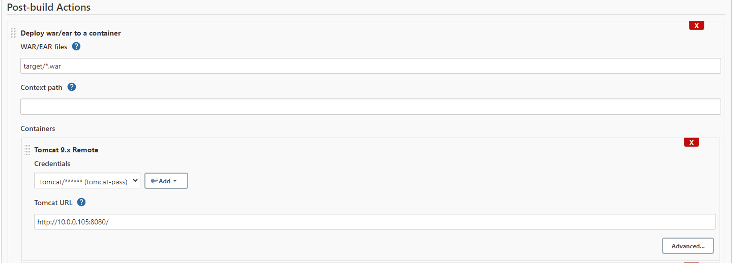 在jenkins配置java home 和 maven home,同时创建tomcat的凭证