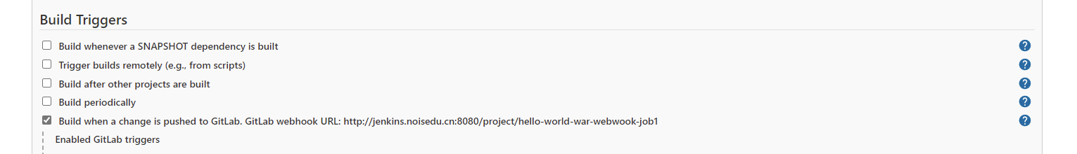 [22:44:39 root@jenkins ~]#vim /etc/sysconfig/jenkins JENKINS_JAVA_OPTIONS="-Djava.awt.headless=true -Dhudson.security.csrf.GlobalCrumbIssuerConfiguration.DISABLE_CSRF_PROTECTION=true" 从网页上restart http://jenkins.noisedu.cn:8080/restart