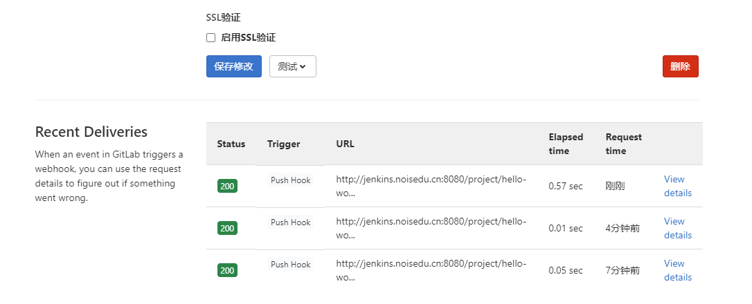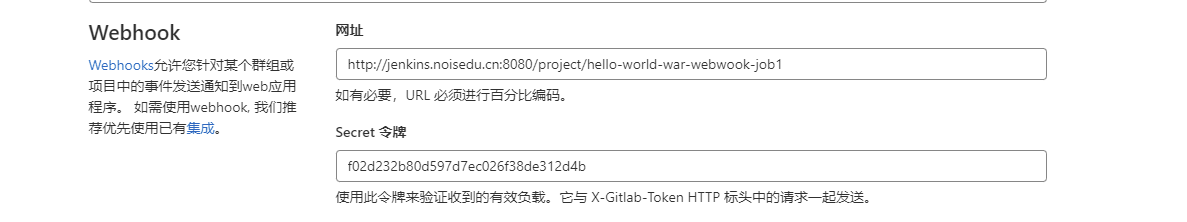 4.4> 在gitlab上面用生产的secret token和网页去设置webhook
