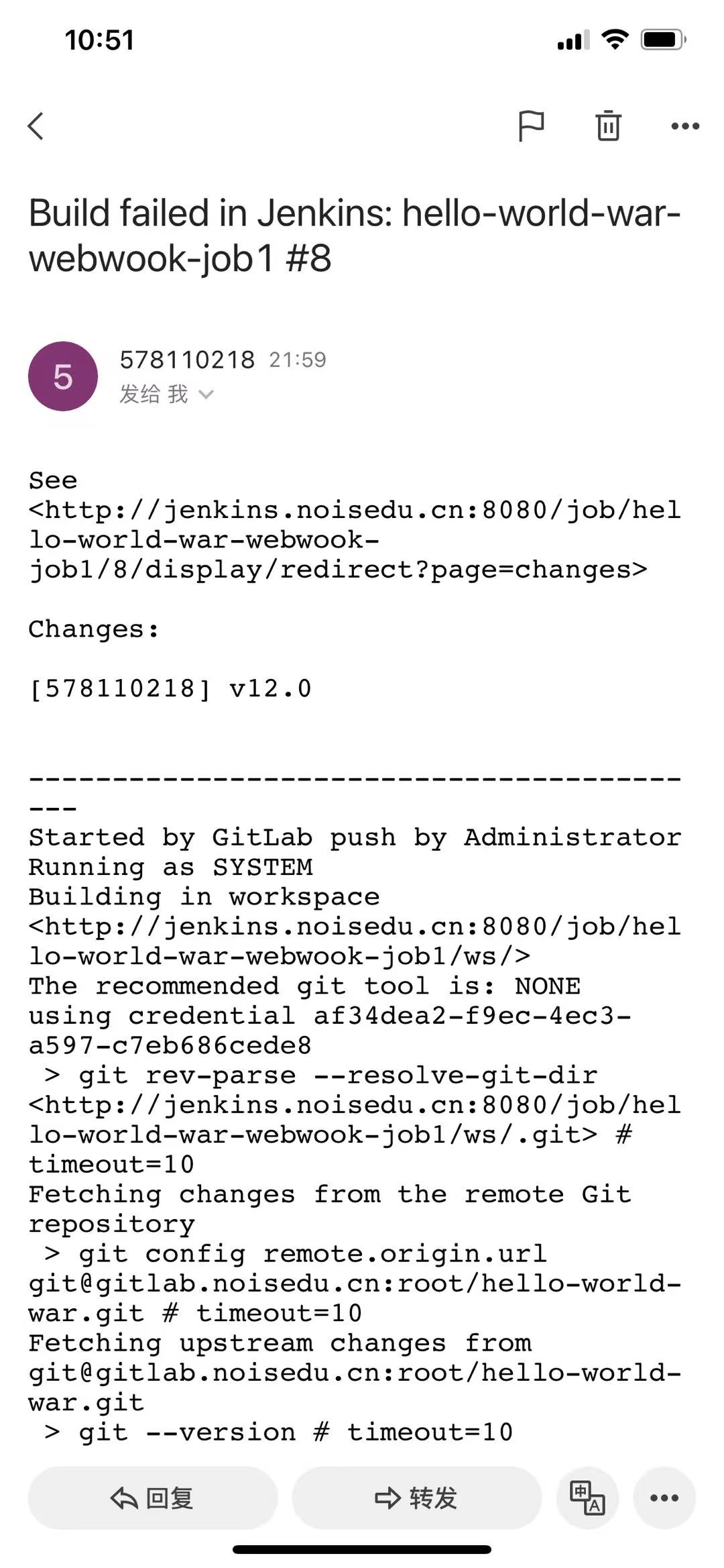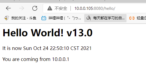 [21:59:40 root@dev webapp]#vim index.jsp [22:49:20 root@dev webapp]#version=v13.0;git add .; git commit -m "$version";git push [main 6477090] v13.0 1 file changed, 1 insertion(+), 1 deletion(-) Enumerating objects: 11, done. Counting objects: 100% (11/11), done. Delta compression using up to 2 threads Compressing objects: 100% (4/4), done. Writing objects: 100% (6/6), 436 bytes | 436.00 KiB/s, done. Total 6 (delta 2), reused 0 (delta 0), pack-reused 0 To gitlab.noisedu.cn:root/hello-world-war.git 5763ca7..6477090 main -> main