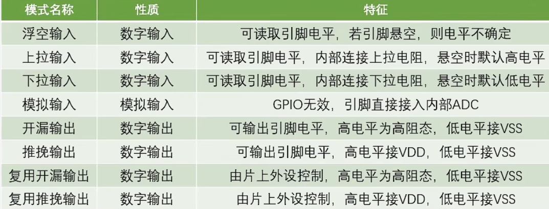 1、GPIO(General Purpose input Output)通用输入输出口,可配置8种输入输出模式