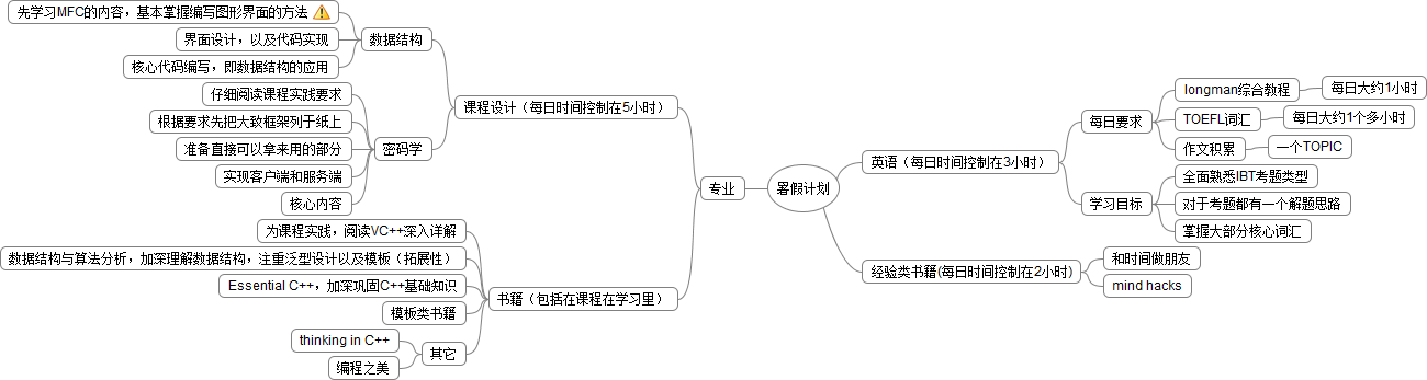 这样就是一张算半制作完成的,有关于暑假计划的脑图了。
