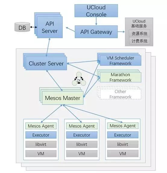 采用 Mesos 来进行容器编排的方案已经被很多厂商使用,相关的资料文档也比较丰富。然而用 Mesos 来管理虚拟机,业内并没有应用于生产环境的实践。本文的余下内容,主要向读者分享一下 UCloud 用 Mesos 管理虚拟机的思路和实践经验。
