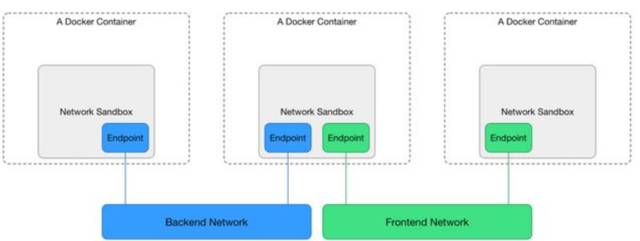 相对的,Docker提出的CNM(Cotainer Network Model)模型实现就比较复杂,但更为完善,比较接近传统的网络概念。如下图所示: