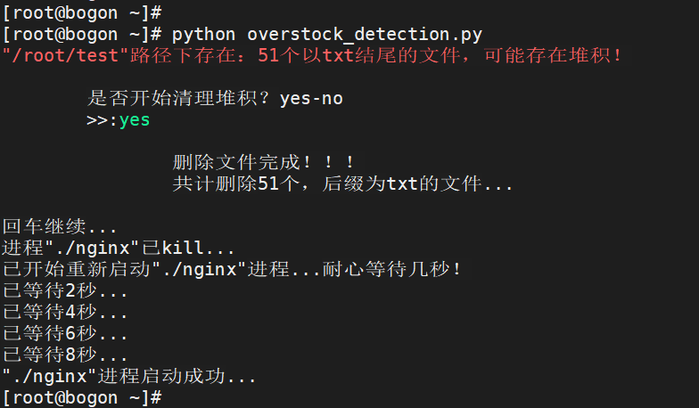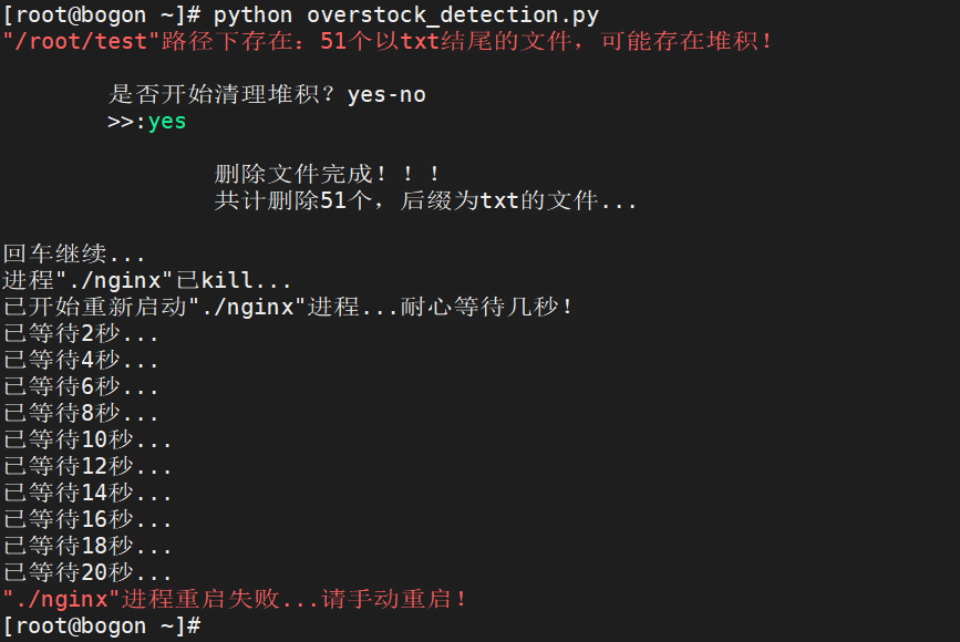 如果超过设定的文件数量就会进行文件的删除并进行服务的重启;