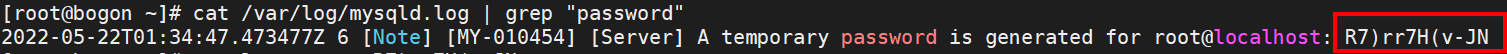 cat /var/log/mysqld.log | grep "password" # 查看临时生成密码