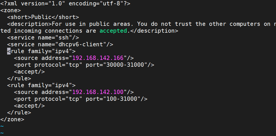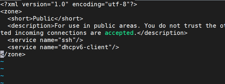 1.vi /etc/firewalld/zones/public.xml # 编辑防火墙配置文件
