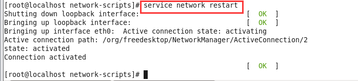 [root@localhost network-scripts]# vim ifcfg-eth0 [root@localhost network-scripts]# [root@localhost network-scripts]# service network restart Shutting down loopback interface: [ OK ] Bringing up loopback interface: [ OK ] Bringing up interface eth0: Error: No suitable device found: no device found for connection 'System eth0'. [FAILED]
