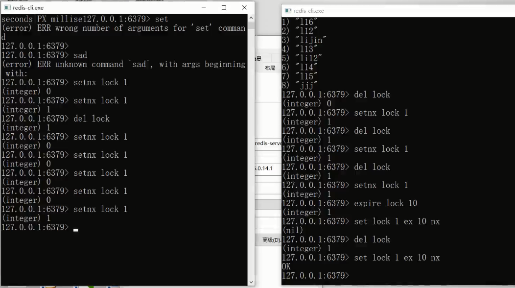 setnx key:key不存在,才能设置成功。设置分布式锁用setnx