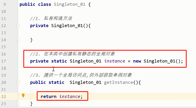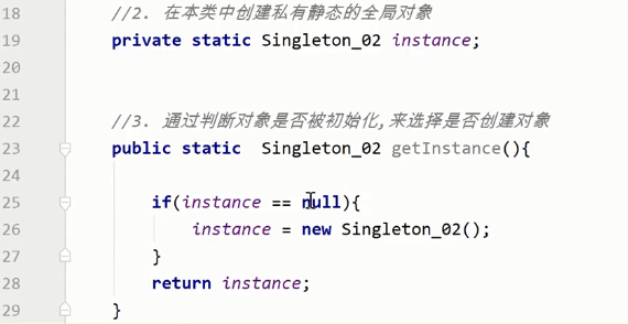 1.饿汉式:在类加载时创建对象,不支持延时加载