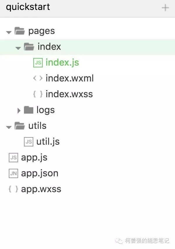 按照『约定优于配置』的原则,一个框架页面至少包含js、wxml、wxss三个文件类型,文件名要一样,例如首页index.js、index.wxml、index.wxss,并且要放在同一文件夹下。页面注册时,文件名不需要写文件后缀,因为框架会自动去寻找路径.json,.js,.wxml,.wxss的四个文件进行整合。