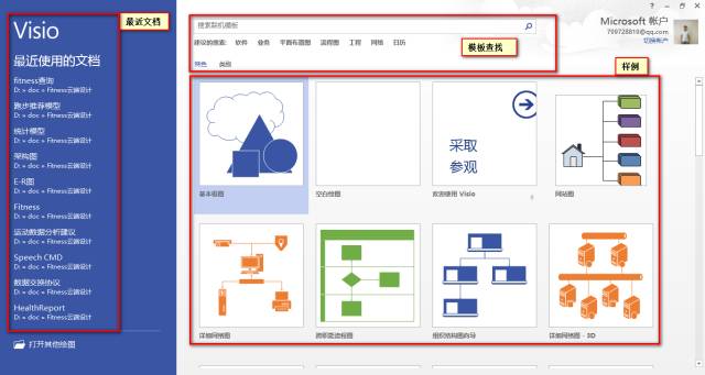 首页左侧是最近编辑过的文件,右上部分模板搜索区,你可以输入模板名称或选择模板分类,右下部分是模板样例。