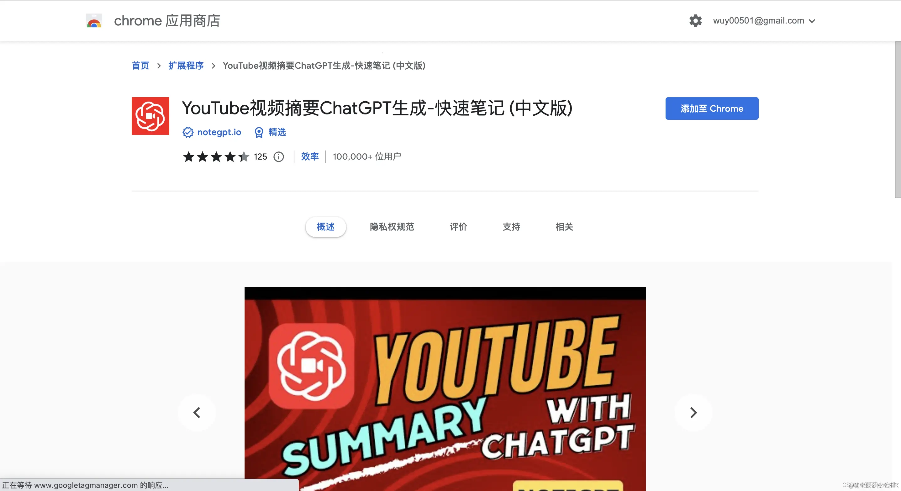 安装插件:NoteGPT: Summary with ChatGPT and Take Notes