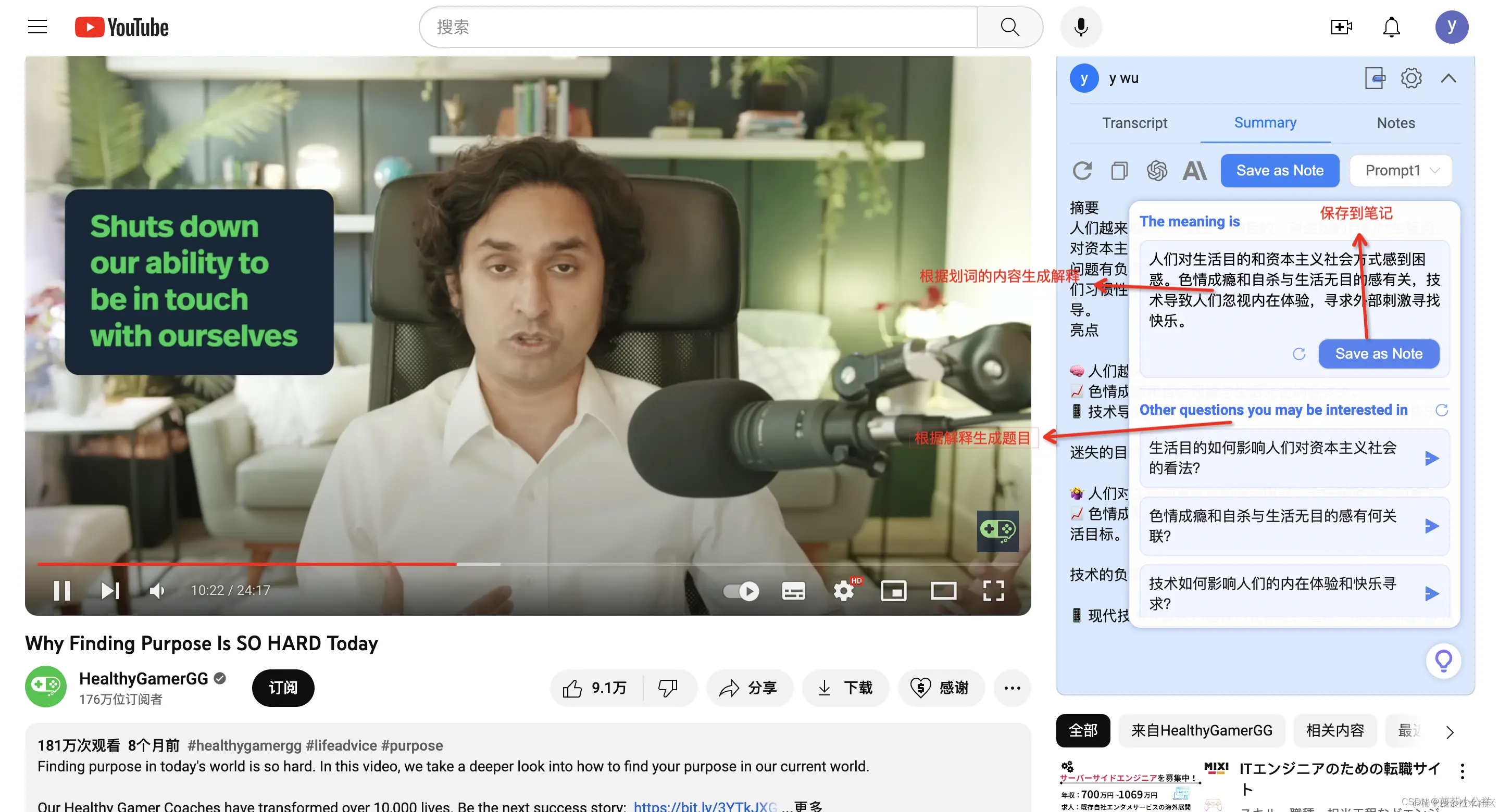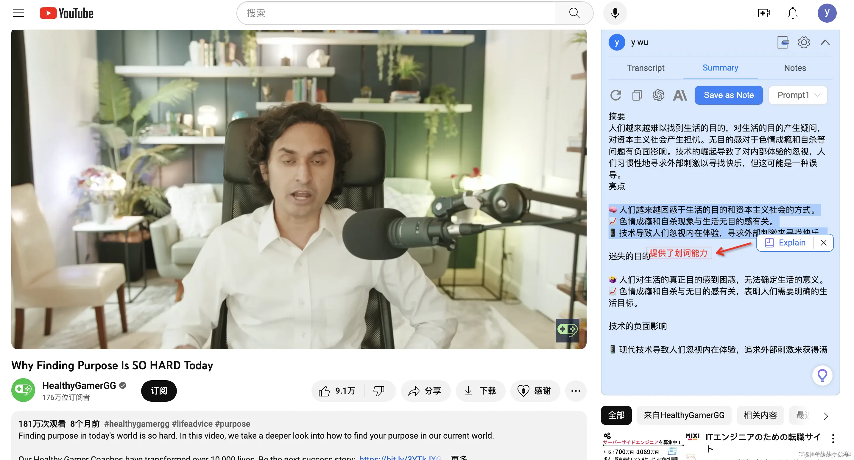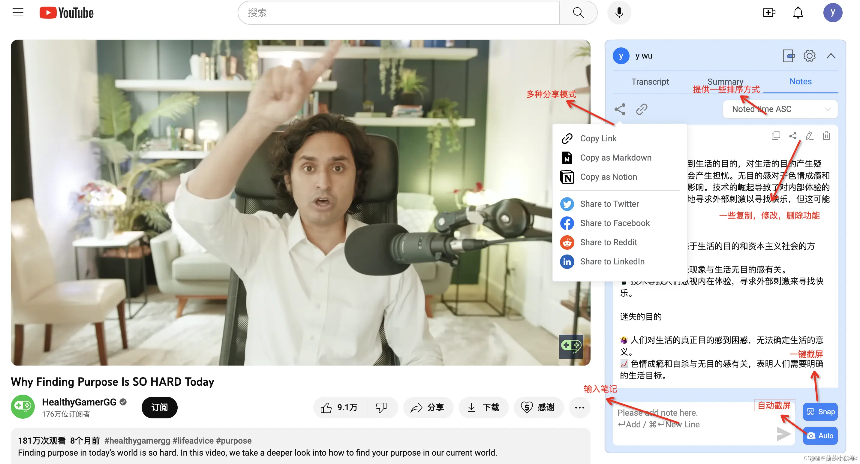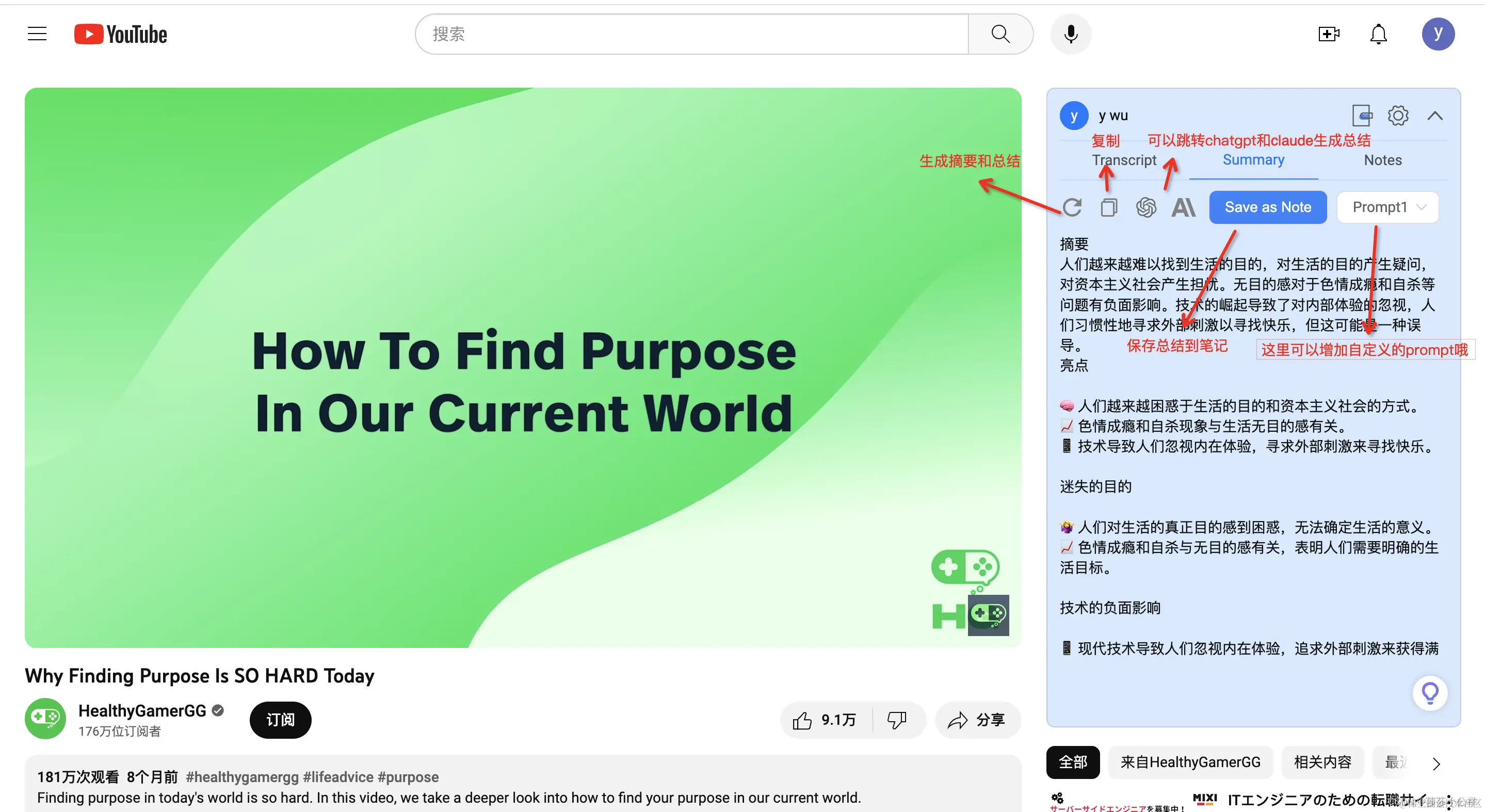NoteGPT插件如何使用?(列举YouTube平台)