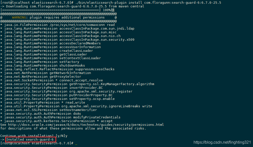 1) elasticsearch的bin目录执行:./elasticsearch-plugin install com.floragunn:search-guard-6:6.7.0-22.5