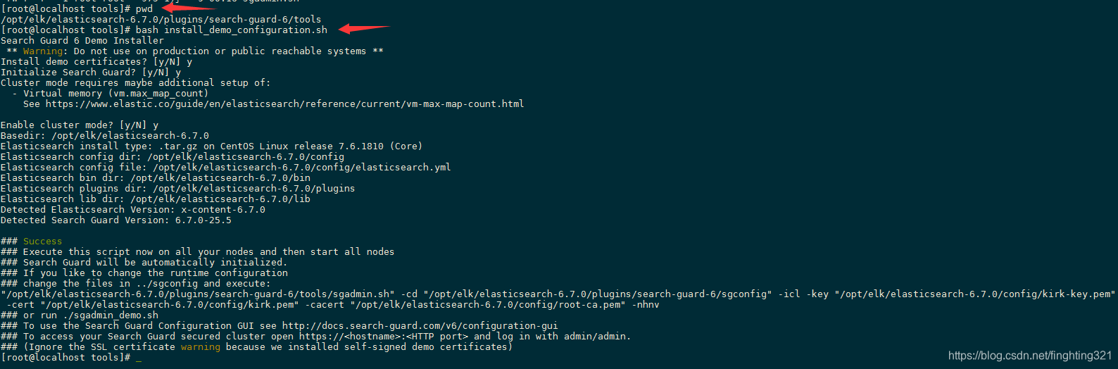 进行demo模式的安装,切换到elasticsearch-6.7.0/plugins/search-guard-6/tools目录下,执行