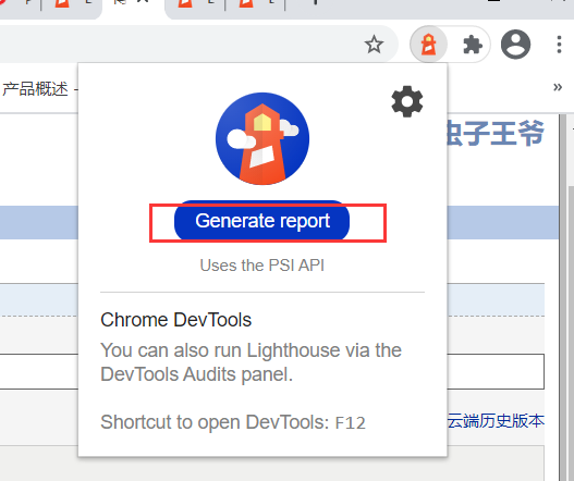 安装方式:chrome直接在扩展程序中搜索LightHouse插件安装即可
