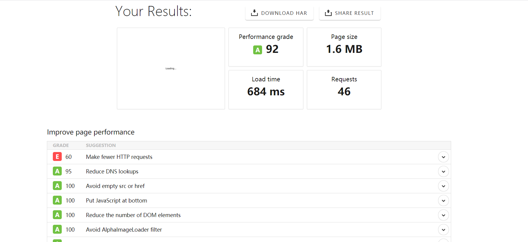 如下图,是百度首页分析的报告,也可以选择保存报告到本地,具体字段可以自己分析,但是需要注意,要分析的地址不能是公司内网地址,如果外网无法访问则会请求超时导致分析失败