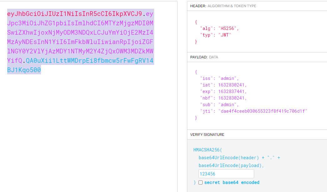 signature,将前两部分用alg指定的算法加密,再经过Base64Url编码就是signature了,