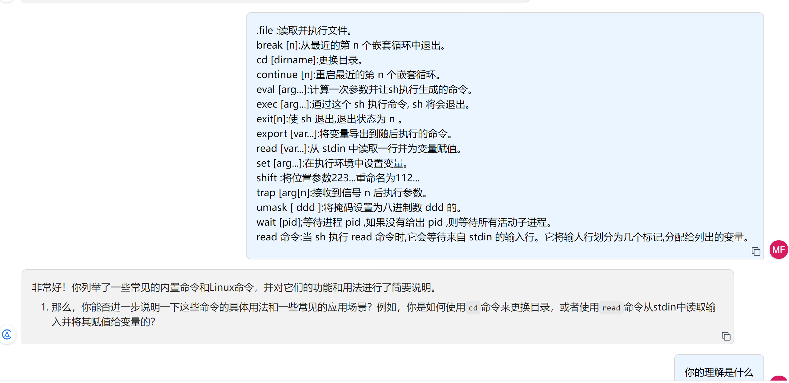 在获得read的输入后,sh可能会测试输入的字符串,以决定下一步做什么