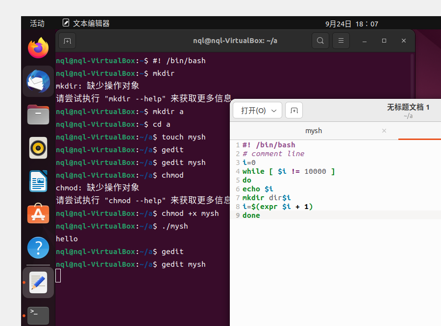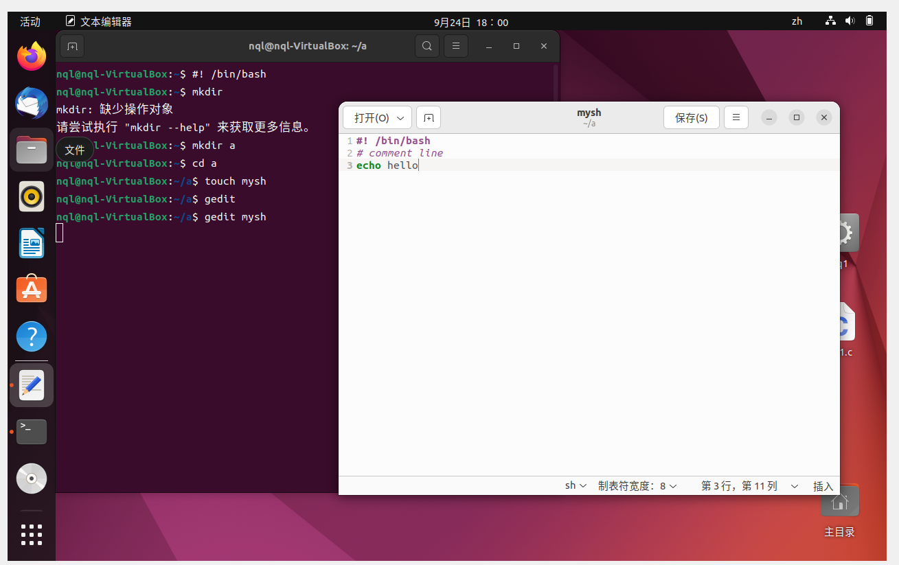 使用chmod +x mysh使其可执行。然后运行mysh。