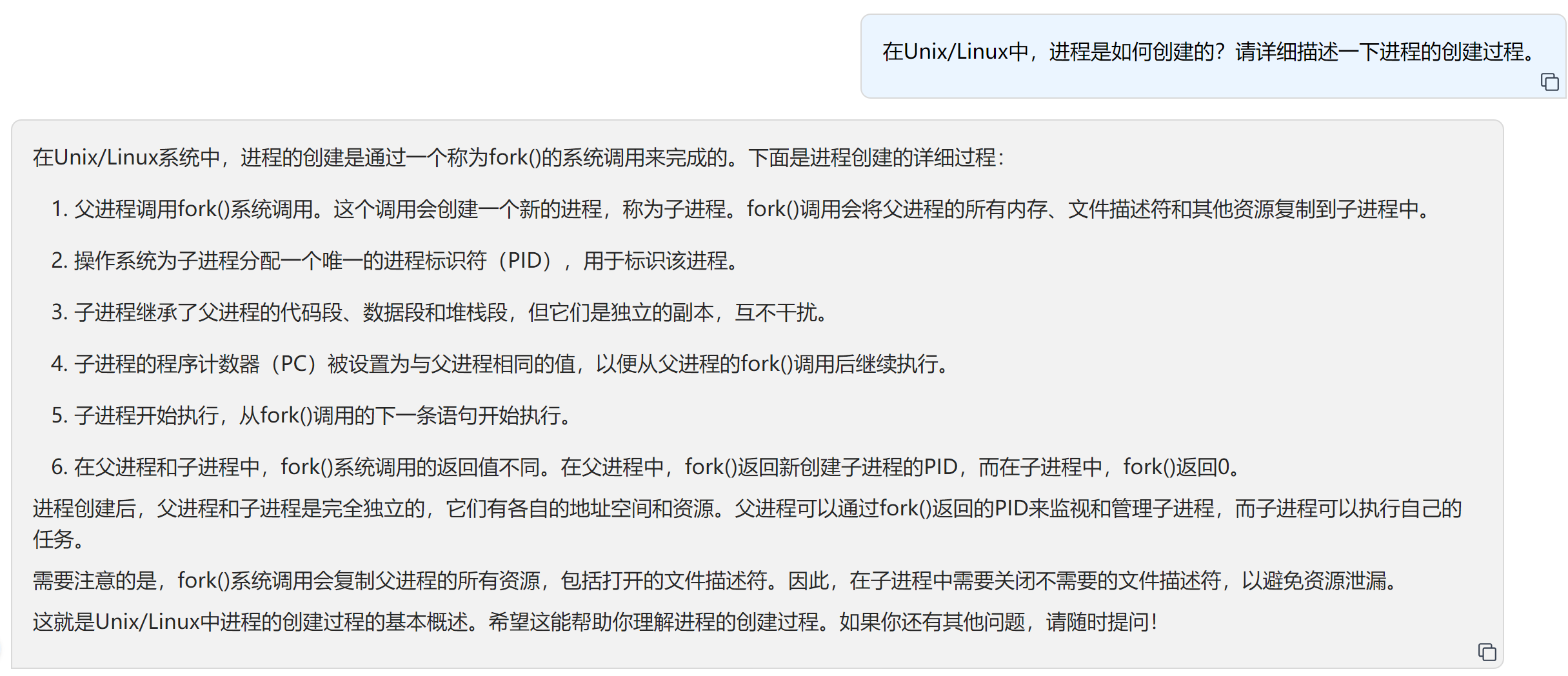 在Unix/Linux中,进程是如何创建的?请详细描述一下进程的创建过程。