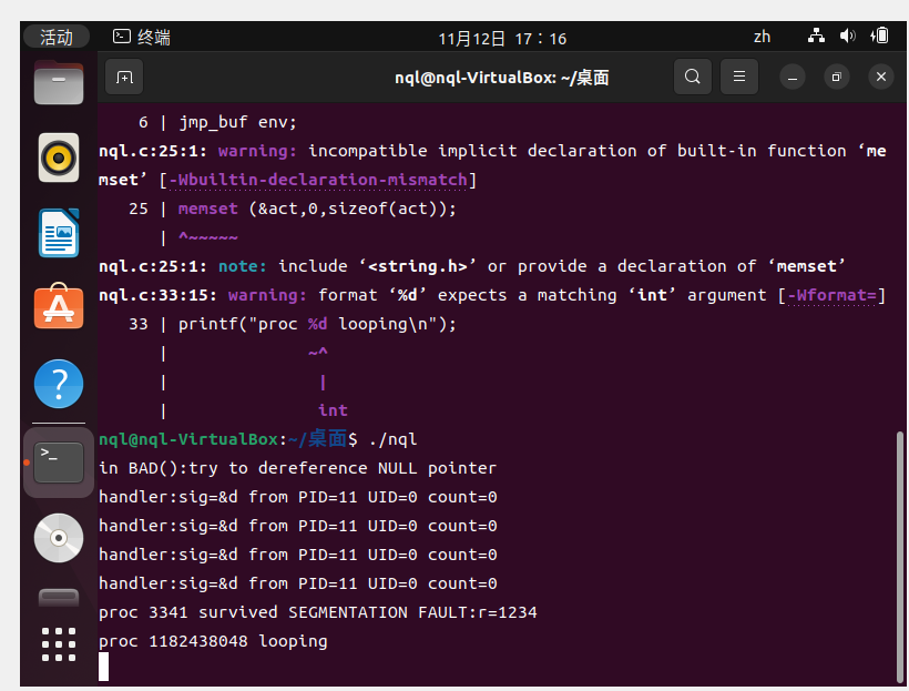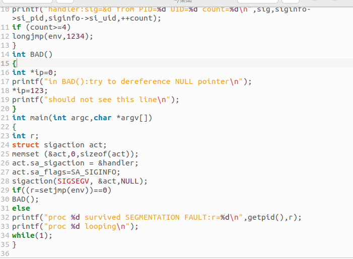 2.让进城通过预先安装的信号捕捉函数用户模式下的程序错误;
