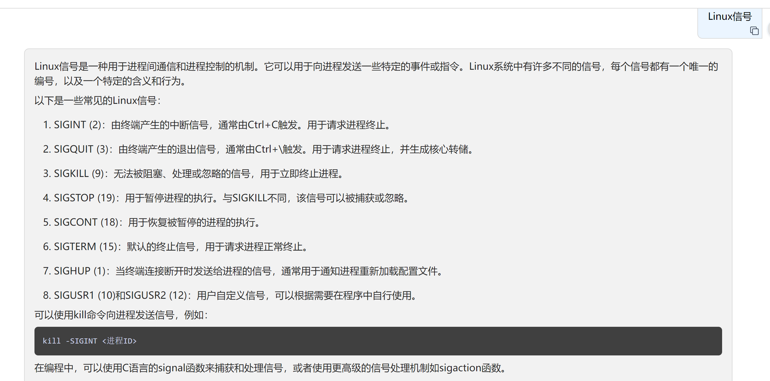 来自其他进程的信号:进程可以使用kill(pid,sig)系统调用向pid标识的目标进程发送信号。