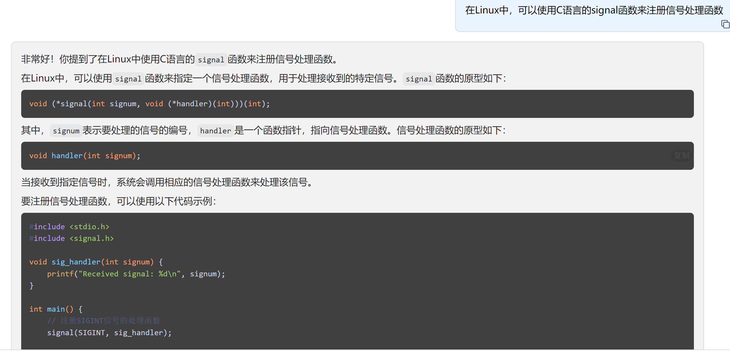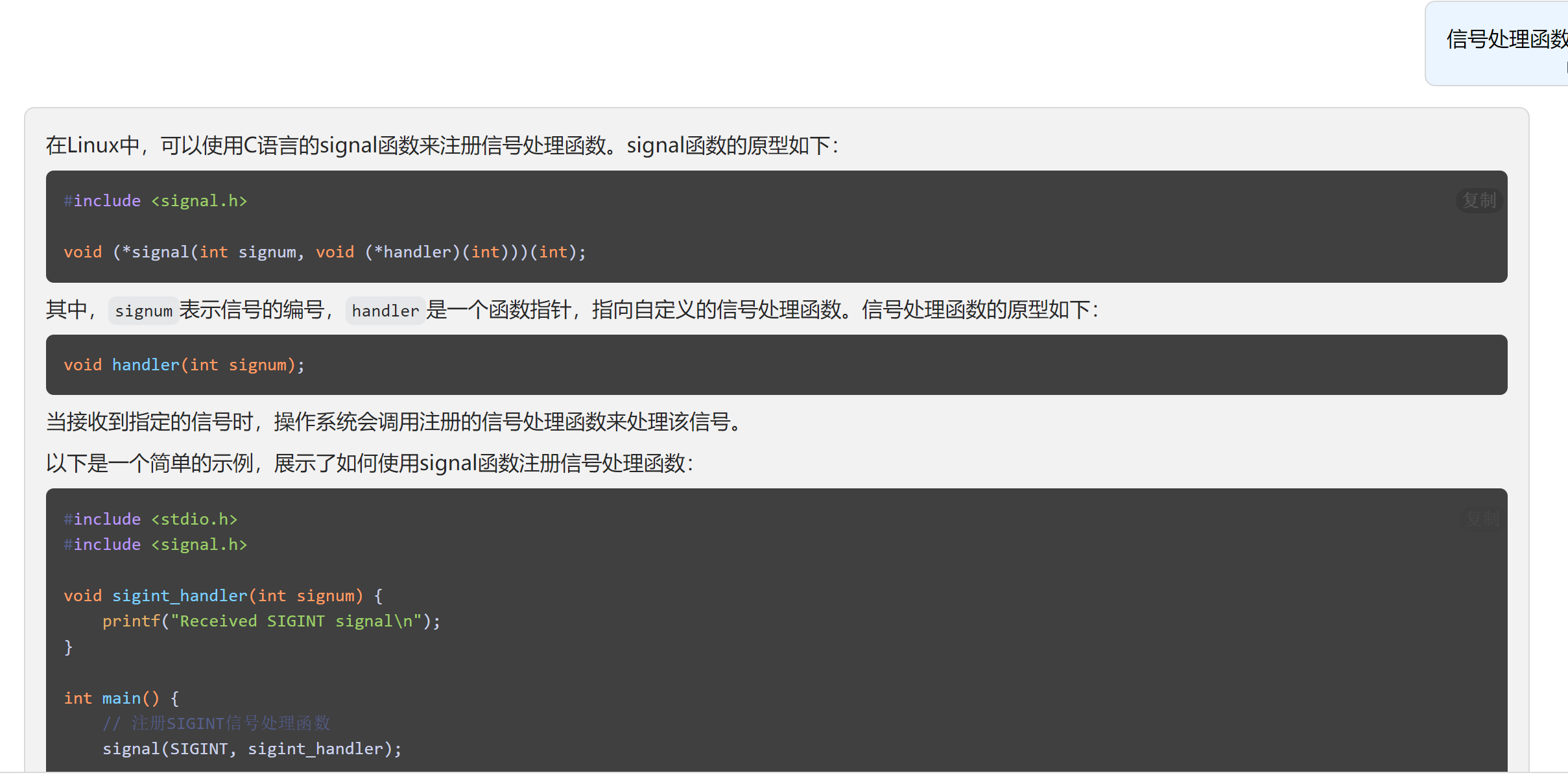 重置用户安装的信号捕捉函数:用户安装的陷阱相关信号捕捉函数用于处理用户代码中的陷阱错误。由于捕捉函数也在用户模式下执行,因此可能会再次出现同样的错误。如果是这样,该进程最终会陷入无限循环,一直在用户模式和内核模式之间跳跃。为了防止这种情况,Unix 内核通常会在允许进程执行捕捉函数之前先将处理函数重置为 DEFault。这意味着用户安装的捕捉函数只对首次出现的信号有效。