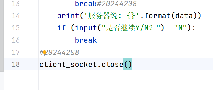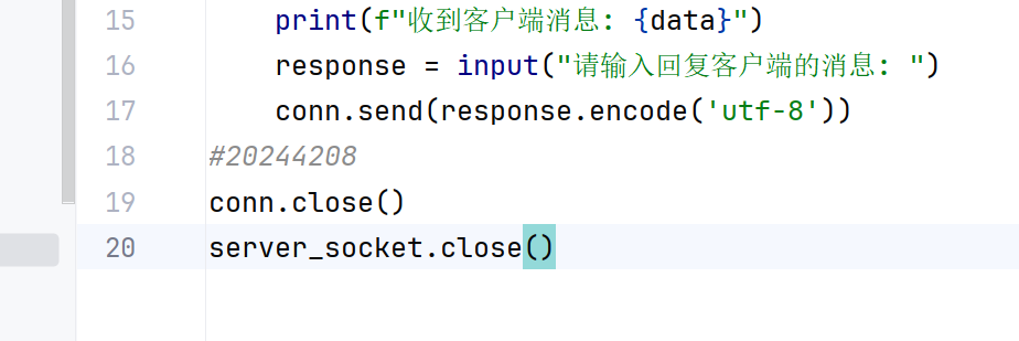 使用while函数使得对话进入一个循环的状态,使用client_socket.recv(1024)规定接收数据的字节,最多接收1024字节