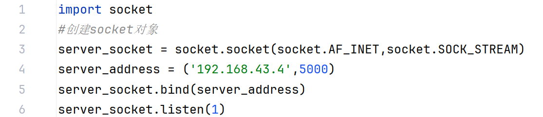 通过server_socket.listen(1)服务器监听连接,“(1)”意为只链接一个客户端