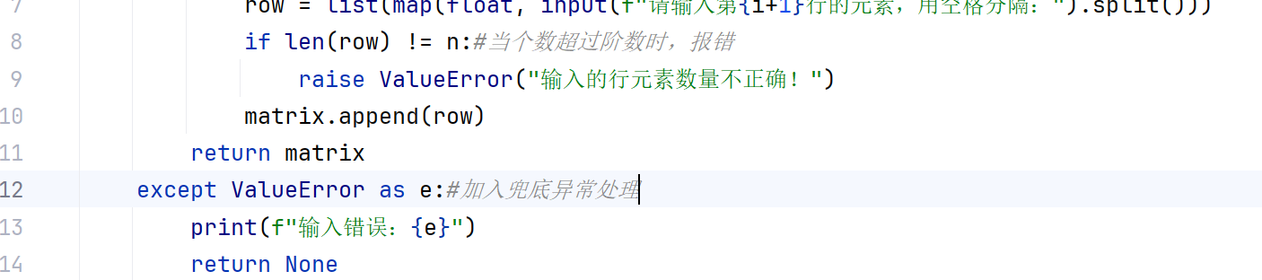 通过异常处理,判断矩阵内元素是否错误,预防程序崩溃