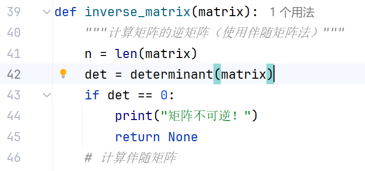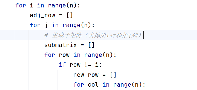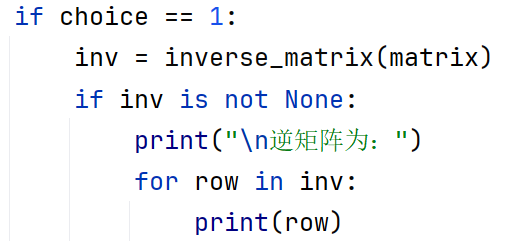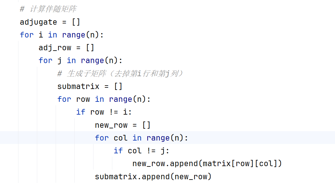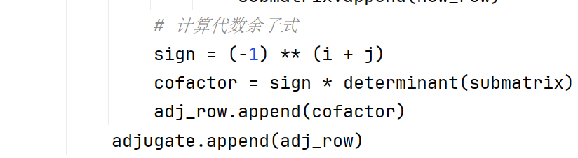 3.定义函数inverse_matrix(matrix):通过伴随矩阵的路径,计算逆矩阵