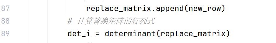 将对应列的元素替换为常数项,生成新的矩阵(即克拉默法则中的分子)循环逻辑基本和第三个自定义函数相同