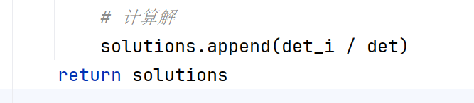 通过克拉默法则计算对应未知数的值,并返回答案solution